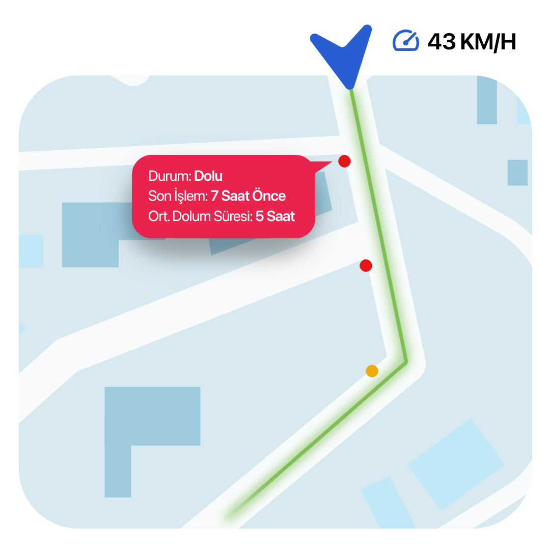 Konteynerlerinizin gün içerisindeki işlemlerini, kaç kez ziyaret edildiğini ve ortalama dolum süresini panel üzerinde görüntüleyebilirsiniz.